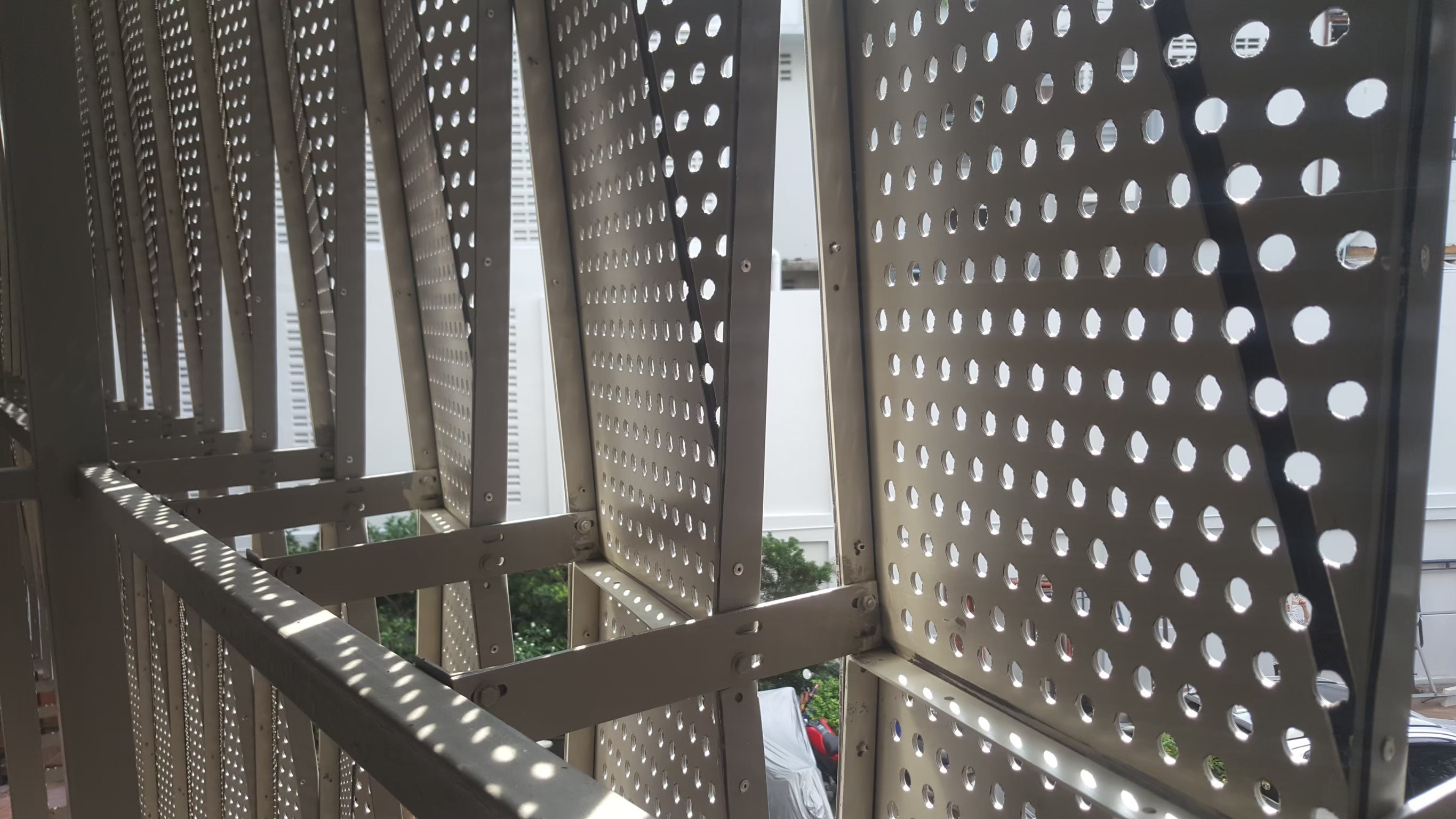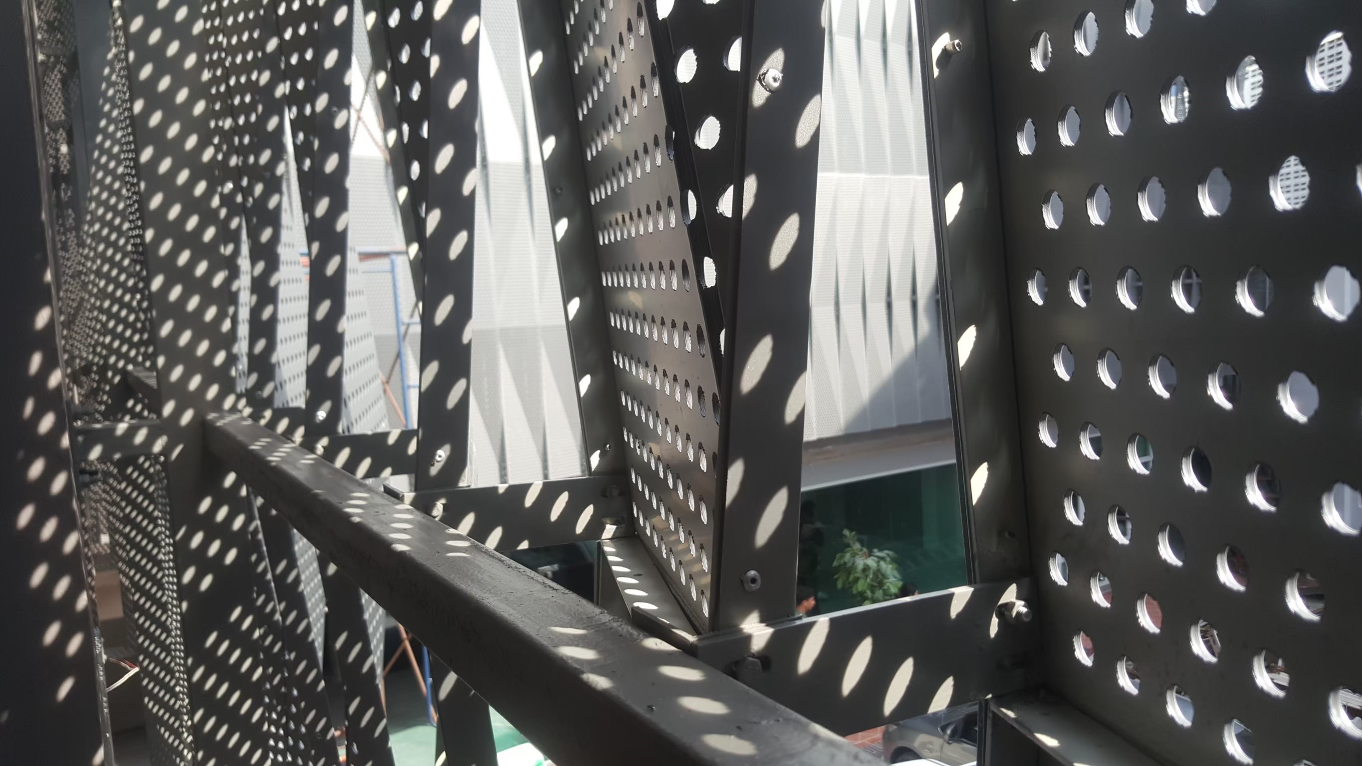 ระบบ Modular Facade ที่ผลิตและประกอบจากโรงงานครบเบ็ดเสร็จทำงานติดตั้งเป็นไปอย่างง่ายดายและใช้เวลาไม่มาก ความลงตัวขอการประกอบช่วยให้งานออกโดนด่ากว่าการปีนนั่งร้านประกอบทีละชิ้น ประแผ่น Aluminium composite ฉลุลายเข้ากับโครงที่ตัดเลเซอร์และเชื่อมในรูปแบบ 3D เป็นที่เรียบร้อย ยึดแผ่น ACM ด้วยรีเว็ททุกระยะ 500 มม. เพื่อความแข็งแรงและการควบคุมองศาความเรียบตลอดทั้งแผ่น เริ่มต้นก่อนเริ่มทำจนิง รวมชิ้นงาน Modular Facade 730 ชิ้น Fab&Form นำมาทำแบ่งเป็นคู่ลงตัวที่ 452 ชิ้น